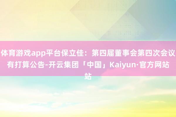 体育游戏app平台保立佳:第四届董事会第四次会议有打算公告-开云集团「中国」Kaiyun·官方网站