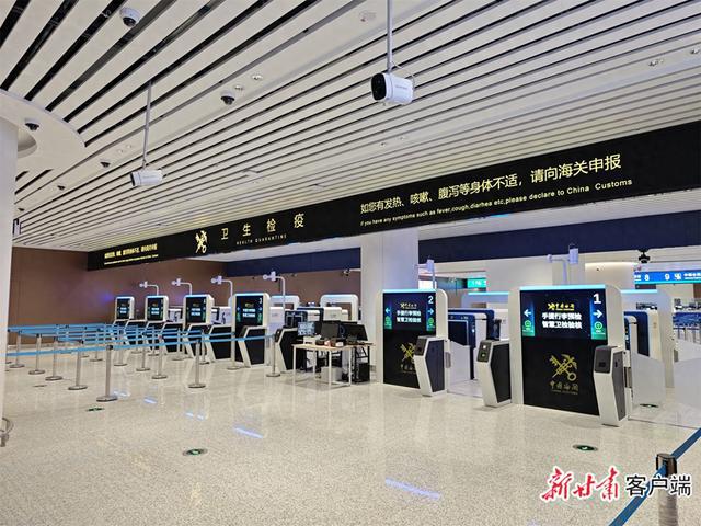 在海关卫生检疫区域,6条搜检通说念均配备了卫检一体化智能闸机。“游客在进行东说念主脸识别或护照信息扫描后,即可‘一站式’完成健康陈诉、身份核验、体温与核放射监测等多项稽查。”兰州海关所属中川机场海关旅检一科科长刘岚说。