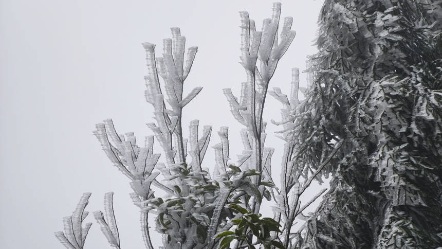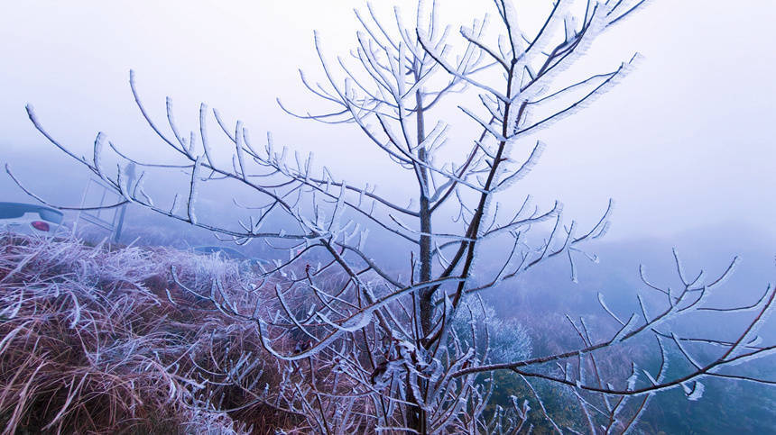 1月22日,受寒潮影响,桂东南第一岑岭大容山的高海拔地带气温骤降至零摄氏度以下,速冻阵势下的大容山迎来了秀雅“冻东说念主”的南国“冰景奇不雅”,迷惑不少搭客前去不雅赏。