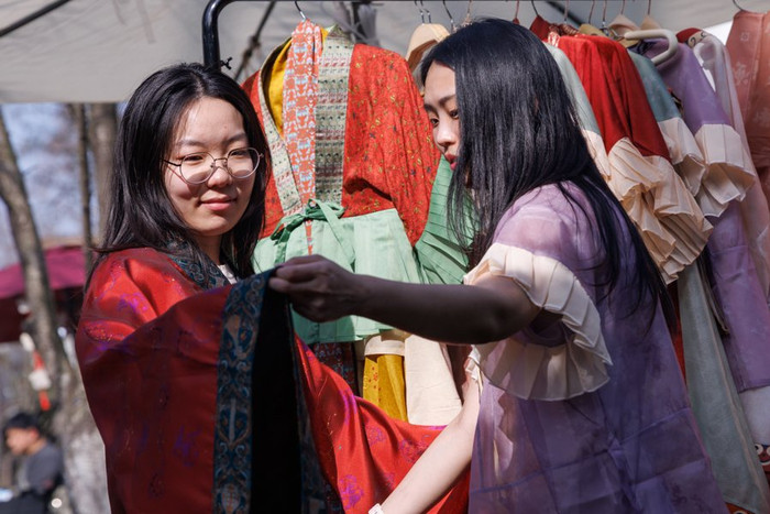 位于四川北路上的趣看好意思术馆聚拢正在举行的云冈石窟展览,在市场现场推出北魏衣饰妆造体验活动。旅客可租赁古装游览公园,拍摄更有氛围感的樱花季好意思图。