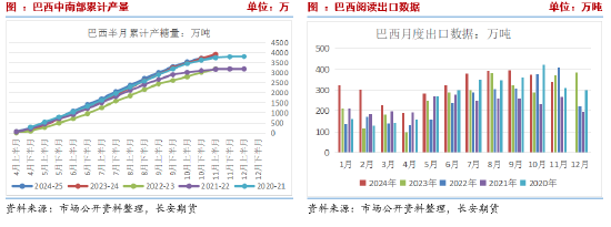 巴西退出供应岑岭,出口或有缩短巴西中南部榨季参预临了阶段,聚合压榨期畴前之后,供应压力渐渐缩短。商场预期该国总产量瞻望仍为3900万吨傍边。2024-25榨季4至11月该国累计出口2669万吨,上榨季同期出口2287万吨,同比加多14.3%。产量低于预期和上榨季,而现在出口增速高于客岁同期,后续食糖出口或同比缩减并撑抓糖价。对于2025-26榨季,11月降水量瞻望将比肤浅跳动22%,这秀美着与2024-25榨季留传的干旱问题将有所缓解。但商场对于甘蔗与糖产量预估依旧较为严慎,同期也存在不合,其中StoneX保管其对2025/26榨季巴西中南部地区的甘蔗入榨量预估为5.932亿吨,而本榨季为6.127亿吨,Datagro预测中南部食糖产量将复原到4200万至4320万吨之间。