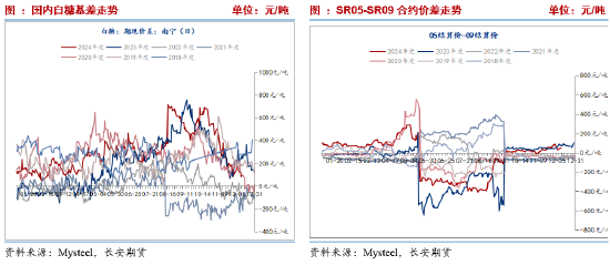 入口资原本看,当下原糖3月合约结算价21.28好意思分,折算入口资本(不含损耗)约在6942,远月7月、10月合约结算价折柳为19.08、18.91,折算成入口资本(不含损耗)约在6322、6274。面前入口食糖吃亏缩短,仍处于吃亏景况,但远月基本抓平略高于国内产区价钱,后续将成为价钱的压力区间,不然将以入口加多来加多国内供应。基差方面,近期由于国内期货商场偏强开动,现货由于压榨程度偏快,近期价钱在经验11月下旬至12月上旬的高潮之后再度偏弱开动,合座而言基差抓续走弱,南宁现货基差现在为127,阶段性高点为200隔邻。近远月价差变化相对较小,合座保管近强远弱的back结构不变。
