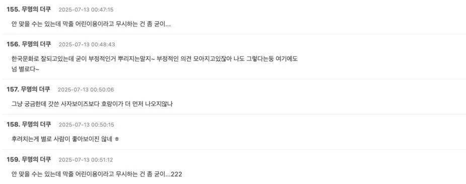有网友反驳:“韩国文化本体好装璜易走向全国,何须公开泼凉水?”,也有网友质疑:“老虎明明在Saja Boys之前就出现了,她是不是根柢没看完?”,更有网友径直开怼:“这么降低只会显得尖酸。”