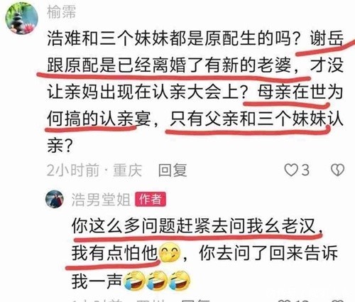 预计词,即便如斯,照旧有不少风趣心爆棚的网友找到了谢浩男堂妹的账号,探访起谢爸爸的婚配问题。堂妹回复说这事儿应该去问当事东谈主,因为我方怕谢爸爸。从这轻视的回报中,网友们仿佛可以看出,在家里谢爸爸便是阿谁金口玉言、说了算的东谈主。
