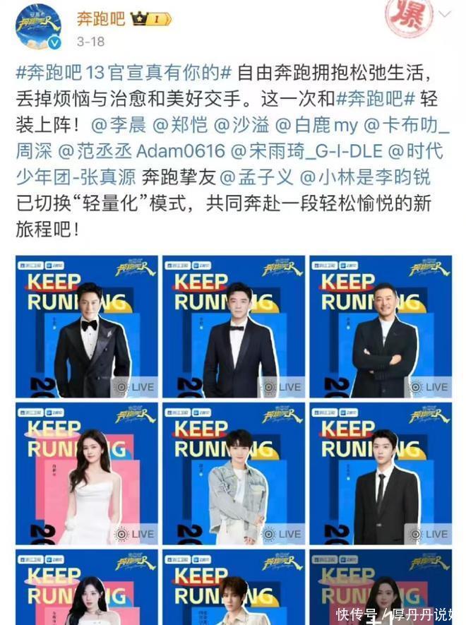 3月18日,国民综艺《奔走吧》第13季崇拜官宣威望,新一季以“如释重担”为主题,携原班东说念主马开启全新篇章。第13季延续了不雅众纯属的常驻威望:李晨、郑恺、沙溢、白鹿、周深、范丞丞、宋雨琦和张真源。与此同期,新增“奔走诤友”孟子义和李昀锐,首期录制将于3月底在武汉开动。
