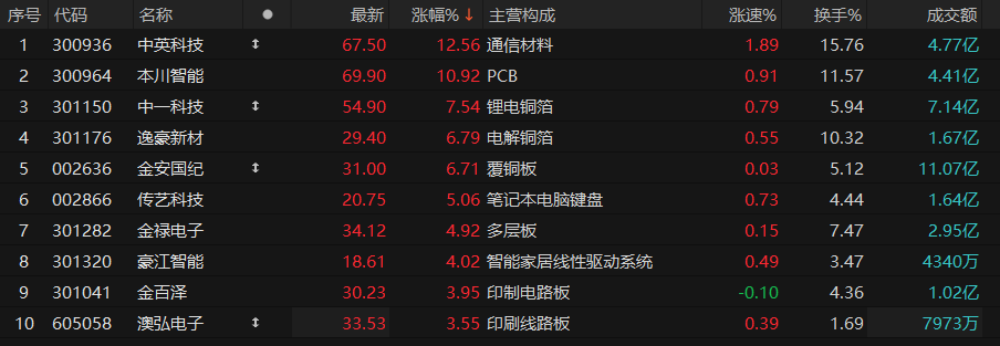 3月16日,早盘PCB观念盘中回暖,中英科技、本川智能涨超10%,中一科技、逸豪新材、金安国纪等跟涨。