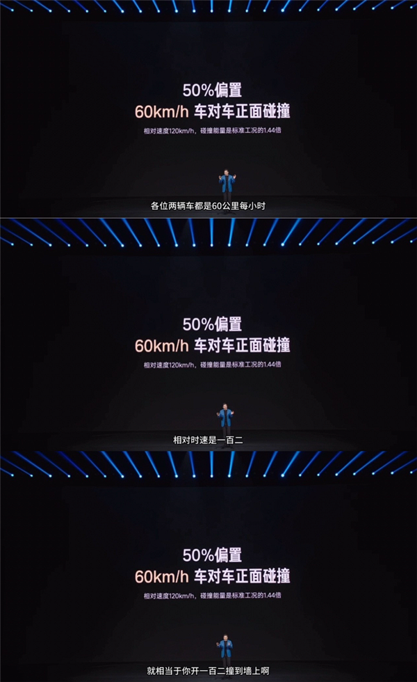 发布会上,我在解说相对速率 120km/h 碰撞本领,口误多讲了一句,卓绝于 120km/h 时速撞墙,确乎说错了。感谢网友们指正。
