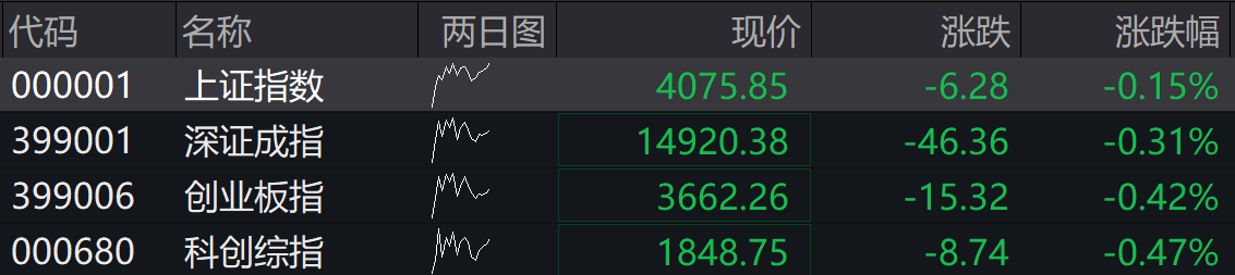 4月21日,A股四大指数集体低开,沪指跌0.15%,深成指跌0.31%,创业板指跌0.42%,科创综指跌0.47%。