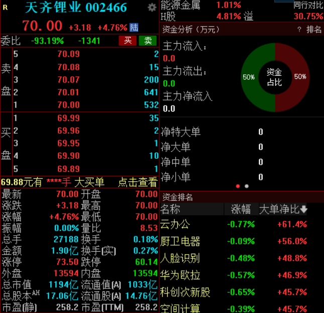 天皆锂业高开近5%,公司2026年一季度净利同比预增1530%-1818%。